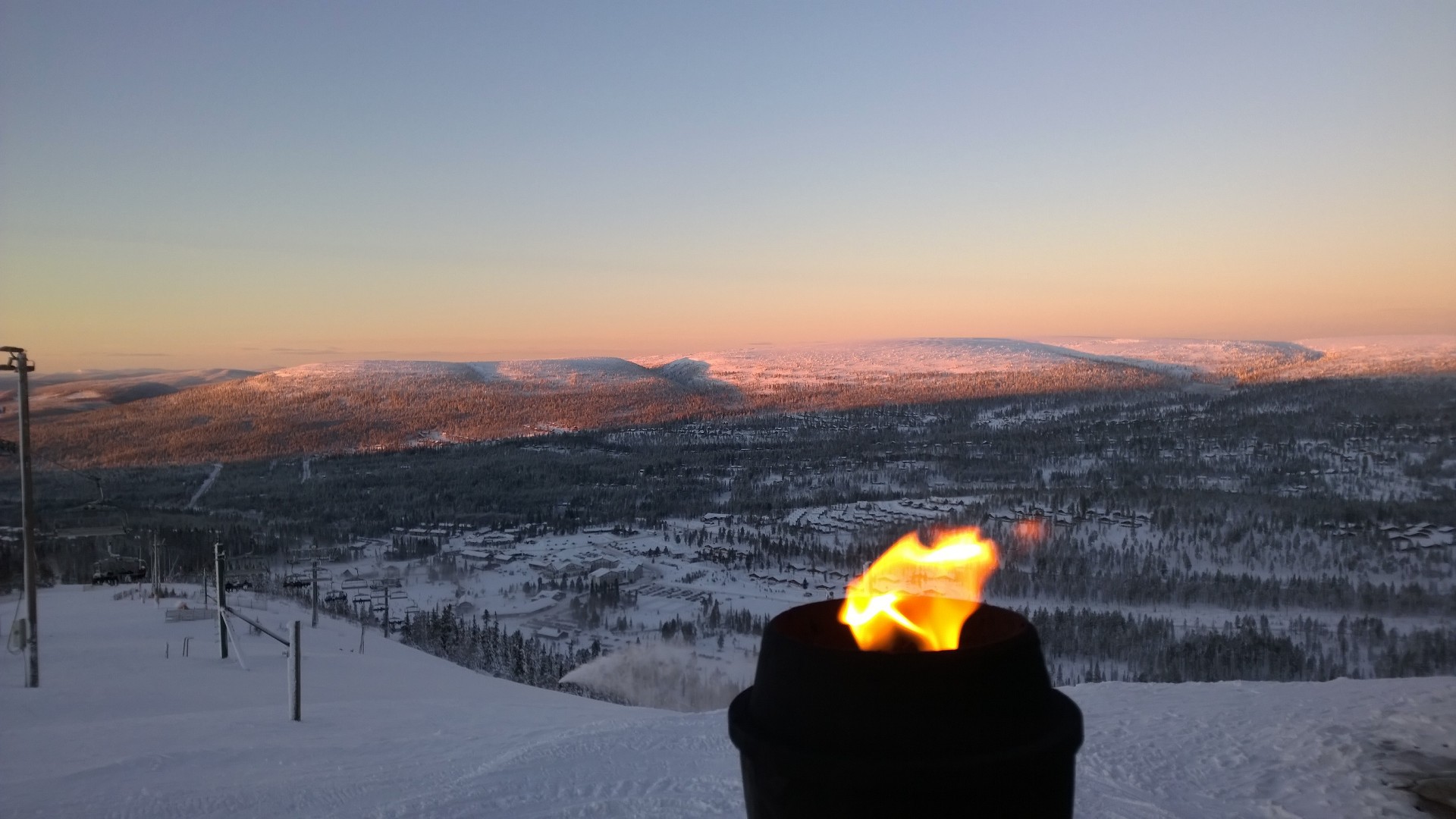 Här har vi ca 15 grader kallt och 30 – 40 cm snö och en fint lysande sol.