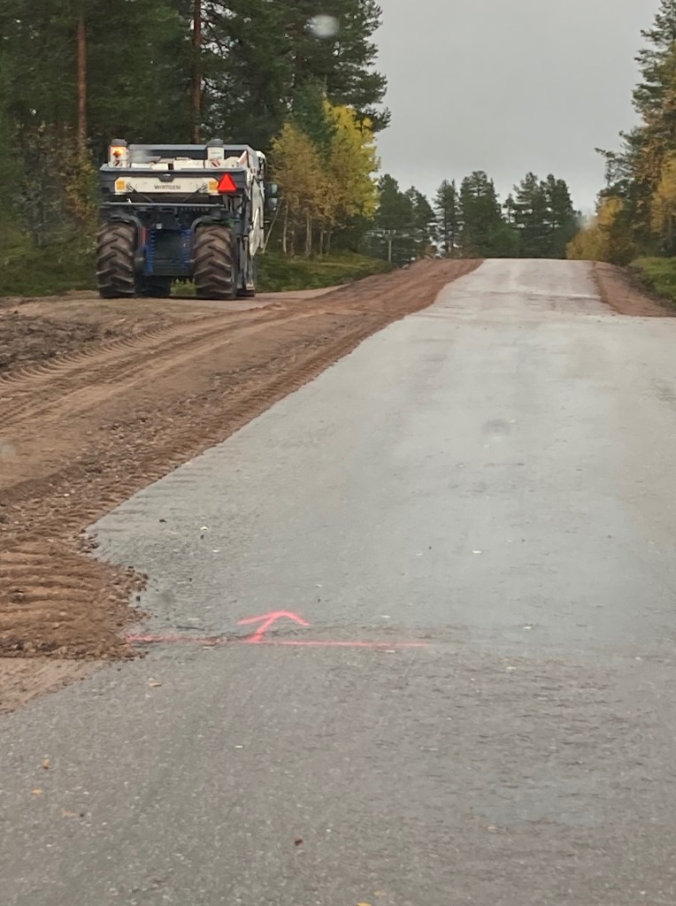 PEAB har påbörjat lagning av sprickor i asfalten med snabelbil där sprickor i vägbanan fylls med tjära och flis. Arbetet utförs för att vatten inte skall tränga in i vägkroppen och orsaka skada. Det kommer finnas fläckvis med flis/grus på vägbanan så var försiktig om du cyklar eller kör MC.