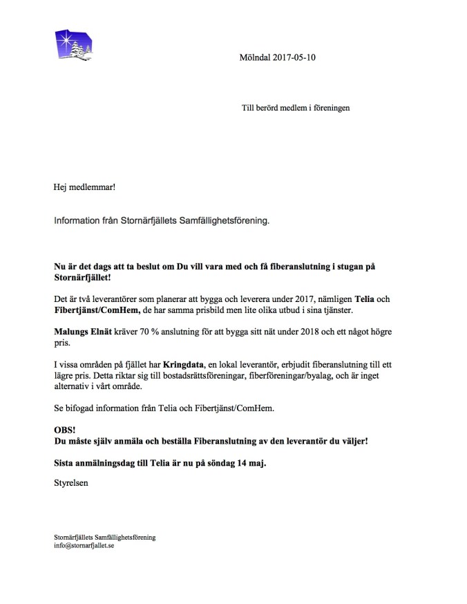 Information från Stornärfjällets Samfällighetsförening.