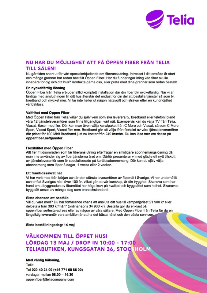 Teckna genom att ringa Kundkontakt på 0771 48 80 00 eller maila info@dalakraft.se. Vi har öppet vardagar 8-21 och 10-14 helgfria lördagar och söndagar.
