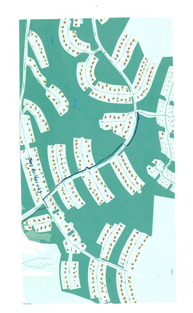 Se bifogad karta för gångvägens placering. Gångvägen kommer i sin helhet ligga på kommunens marks som numera ingår i Samfällighetens GA.